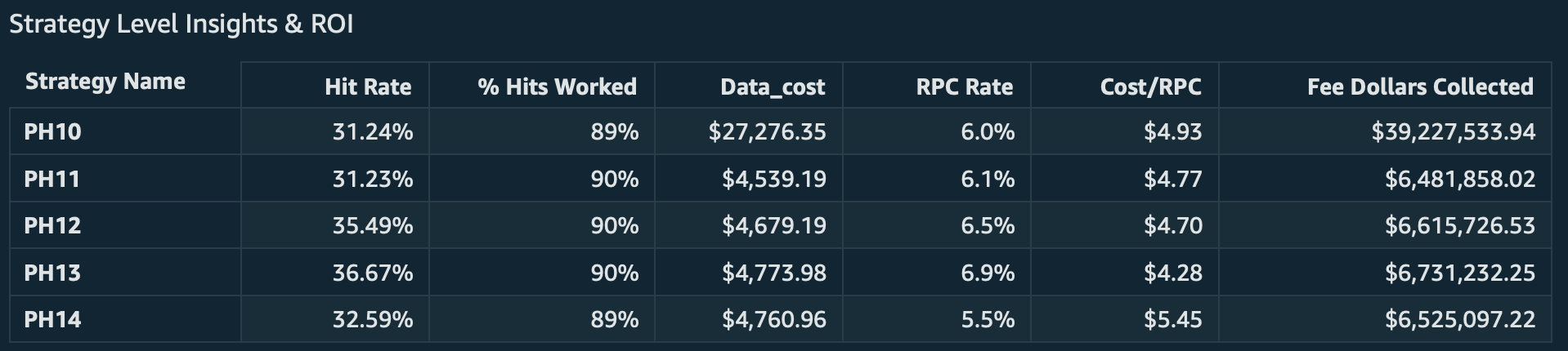 - OPERATIONAL PERFORMANCE INSIGHT I.E. RPC RATES, AVERAGE DIALS/PHONE NEEDED TO GET THAT RPC RATE, WRONG PARTY RATES AND A UNIQUE COST/RPC METRIC TO EVALUATE EACH VENDOR’S RESPECTIVE ROI